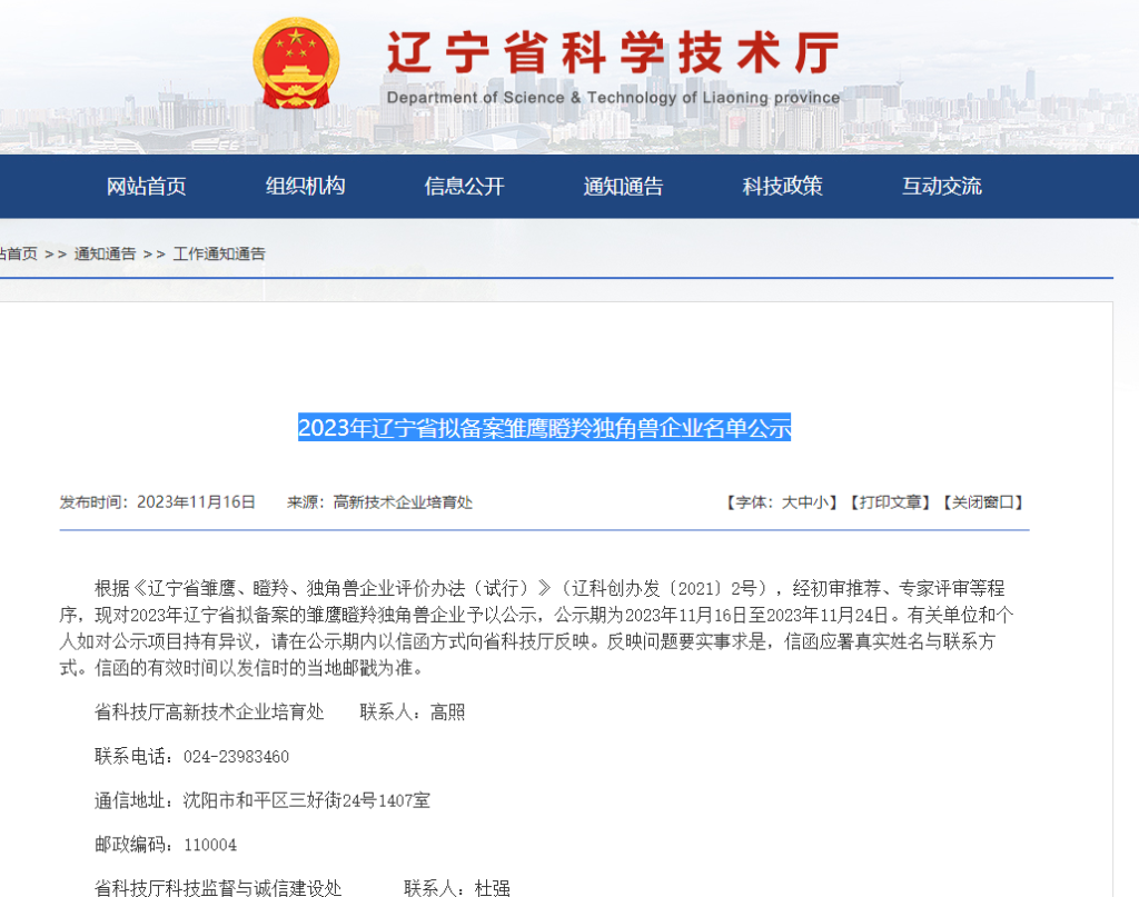 2023年11月16日,遼寧省科學技術廳發(fā)布的《2023年遼寧省擬備案雛鷹瞪羚獨角獸企業(yè)名單公示》,大連騰屹信科技有限公司成功入選“雛鷹企業(yè)”。
