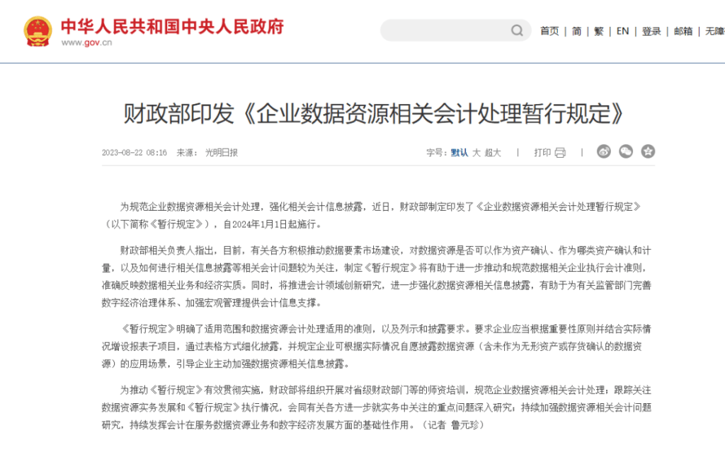 近日,我國發(fā)布《企業(yè)數(shù)據(jù)資源相關(guān)會計處理暫行規(guī)定》,自2024年1月1日起施行。隨之關(guān)于數(shù)據(jù)要素產(chǎn)業(yè)發(fā)展的政策文件密集出爐,尤其是“數(shù)據(jù)資產(chǎn)”入表的政策,使我國跨入數(shù)字化時代邁出實質(zhì)性一步。
