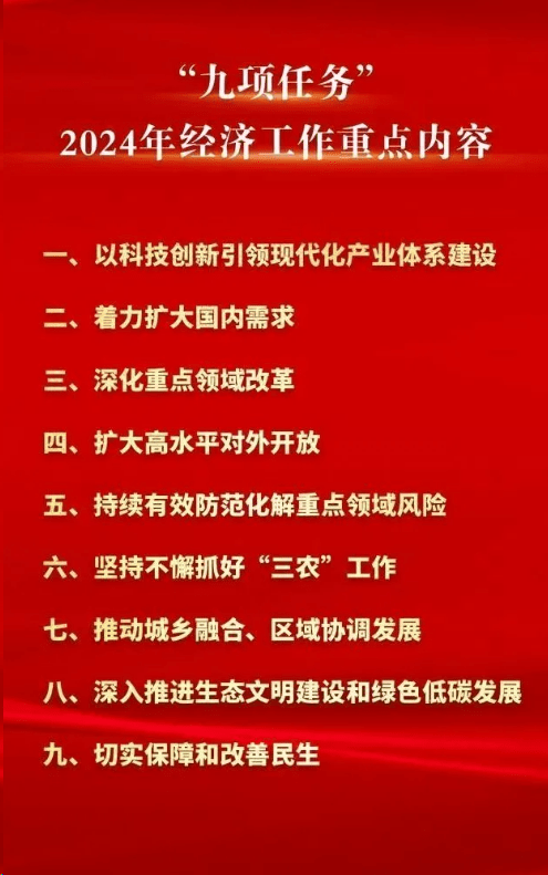 2023年12月11日至12日,中央經(jīng)濟工作會議召開,部署了2024年經(jīng)濟工作的九項重點任務,其中“以科技創(chuàng)新引領現(xiàn)代化產(chǎn)業(yè)體系建設”、“著力擴大國內(nèi)需求”這兩項任務,從供給和需求平衡發(fā)展的角度為2024年的經(jīng)濟工作指明了方向。