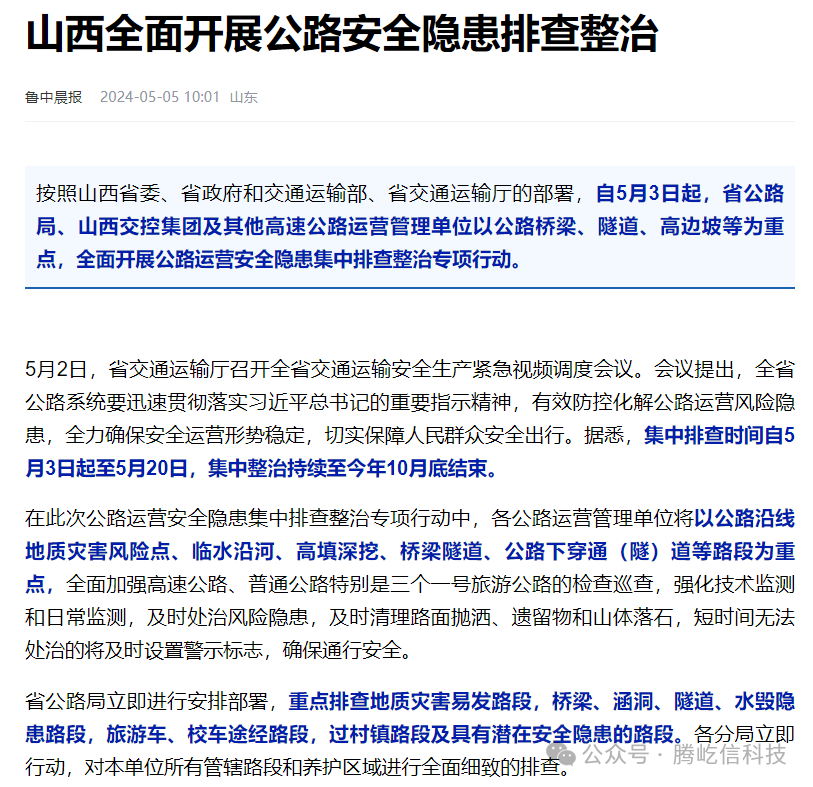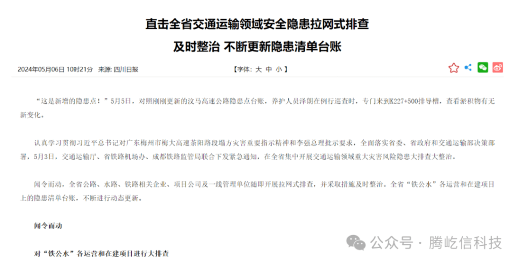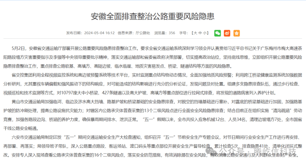 各地紛紛加強(qiáng)高速公路等基礎(chǔ)設(shè)施災(zāi)害風(fēng)險(xiǎn)隱患排查,集中整治時(shí)間持續(xù)至今年汛期結(jié)束,堅(jiān)守崗位保障安全!