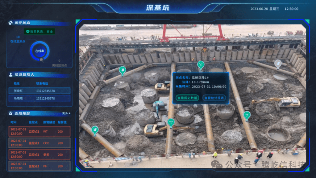 基礎(chǔ)施工是建筑施工的重要組成部分,基坑施工是基礎(chǔ)建設(shè)的重要一環(huán),而其隱患是對安全施工的最威脅,為保障安全施工,騰屹信根據(jù)不同項(xiàng)目和場景設(shè)計(jì)出深基坑分析預(yù)警系統(tǒng),更為精準(zhǔn)、智能、嚴(yán)謹(jǐn),輔助項(xiàng)目施工的質(zhì)量和效率提升。