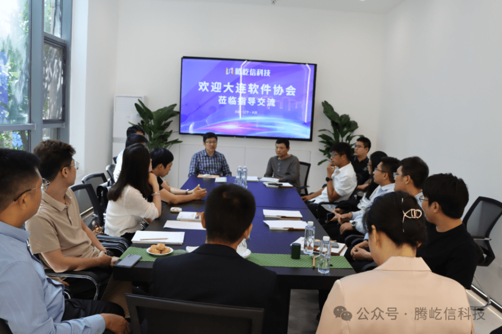 2024年5月29日,大連軟件協(xié)會帶會員單位一行企業(yè)家到訪大連騰屹信科技進行參觀和交流座談。