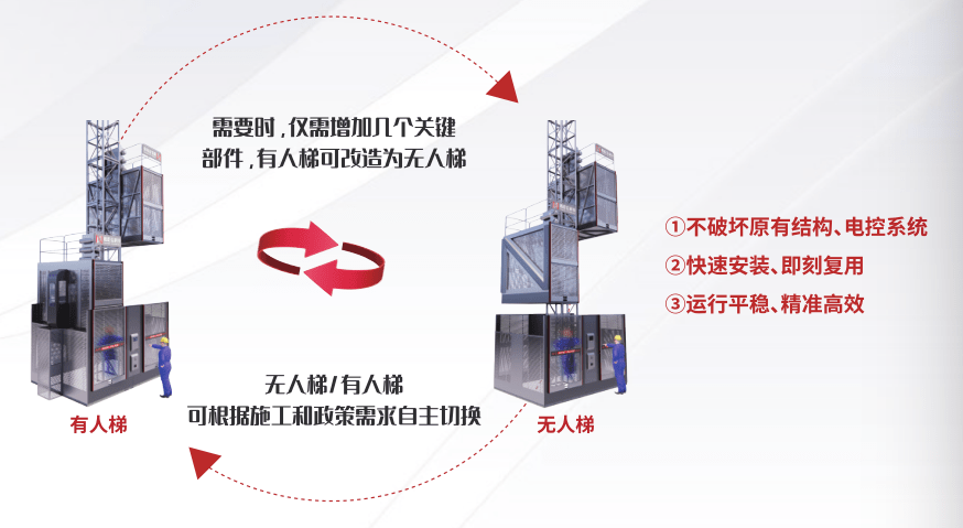 2.不改變原有設備結構、動力系統(tǒng)及安全設施的前提下,通過科學加裝傳感器、視覺AI設備、人工智能主從機及自動化執(zhí)行組件,實現(xiàn)最新款智能無人駕駛升降機的全部功能。