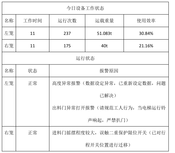 運(yùn)載次數(shù) 412 次運(yùn)載重量 51.083 噸(單籠)