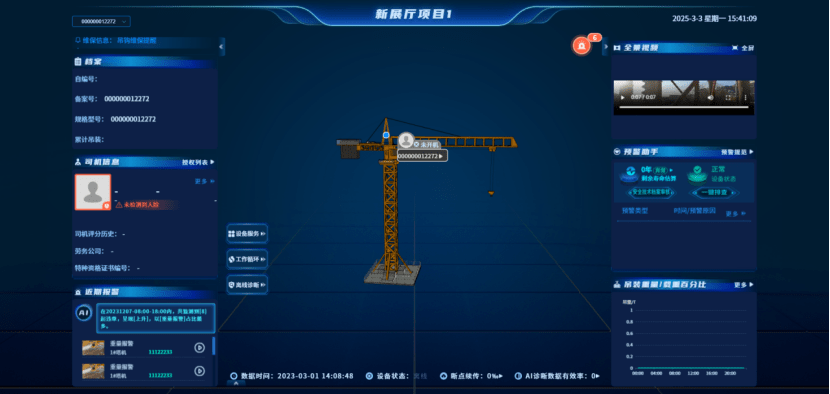 【行業(yè)首創(chuàng)”上帝視角“】基于傳感器技術(shù)、嵌入式技術(shù)、數(shù)據(jù)處理技術(shù)、遠(yuǎn)程通信技術(shù),將AI視頻識(shí)別技術(shù)、AR技術(shù)、數(shù)字孿生、機(jī)器視覺及動(dòng)態(tài)視頻剪輯拼接技術(shù)進(jìn)行融合,系統(tǒng)可實(shí)時(shí)生成塔機(jī)作業(yè)全景視圖,徹底消除視覺盲區(qū),且每一處細(xì)節(jié)都嚴(yán)格遵循真實(shí)比例,杜絕畸變干擾。【數(shù)字孿生】通過集成傳感器、物聯(lián)網(wǎng)、大數(shù)據(jù)處理和智能算法等先進(jìn)技術(shù),實(shí)時(shí)采集塔機(jī)各項(xiàng)運(yùn)行參數(shù)和狀態(tài)數(shù)據(jù),實(shí)現(xiàn)塔式起重機(jī)作業(yè)場(chǎng)景數(shù)字孿生,精確掌握現(xiàn)場(chǎng)物品的具體位置,有效避免監(jiān)控屏幕信息過載導(dǎo)致的“花眼”現(xiàn)象。