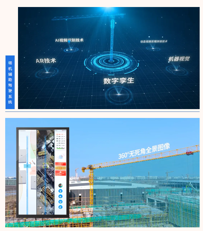 • 系統(tǒng)通過多路視頻融合技術(shù),實現(xiàn)了塔機作業(yè)區(qū)域的全景顯示,操作人員可輕松鎖定目標(biāo)區(qū)域。首創(chuàng)的“上帝視角”功能,真實還原現(xiàn)場尺寸,無畸變顯示作業(yè)環(huán)境,極大提升了操作準(zhǔn)確性。AR增強現(xiàn)實技術(shù)的應(yīng)用,使落點位置和大臂覆蓋區(qū)域精準(zhǔn)可視,大幅降低操作難度。