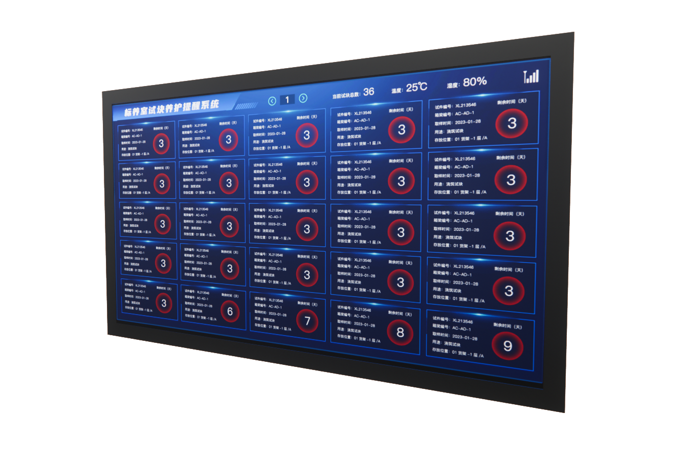 養(yǎng)護(hù)到期提醒系統(tǒng)由平臺(tái)軟件和超大顯示屏組成,通過對(duì)實(shí)驗(yàn)室內(nèi)貨架進(jìn)行編號(hào),每次放入和取出在移動(dòng)端掃碼操作一下,系統(tǒng)實(shí)現(xiàn)試塊剩余時(shí)間提醒,可設(shè)置自動(dòng)時(shí)間提醒、可定制開發(fā),實(shí)驗(yàn)室養(yǎng)護(hù)數(shù)據(jù)公示大屏也方便人員交接班,且歷史數(shù)據(jù)收集匯總分析可提高混凝土養(yǎng)護(hù)實(shí)驗(yàn)室的管理效率。
